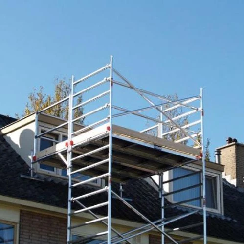 Stevige dakkapel steiger die gemakkelijk op te zetten is en te monteren aan een rolsteiger