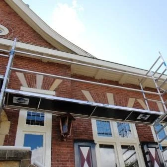Afhankelijk van de lengte van de brug, de gebruikte platformlengte op de rolsteigers wordt het dan mogelijk om de rolsteiger als gevelsteiger te gebruiken.